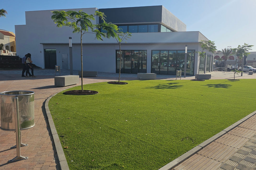Este nuevo espacio público, finalizado como plaza arbolada, accesible, cómoda, con mobiliario urbano y zona de recreo se enmarca en el convenio del Ayuntamiento de Antigua con la promotora del nuevo centro comercial en construcción, que en los próximos días anunciará su apertura, ofreciendo una referencia de marcas internacionales y un espacio innovador para el residente y turista que nos visita.