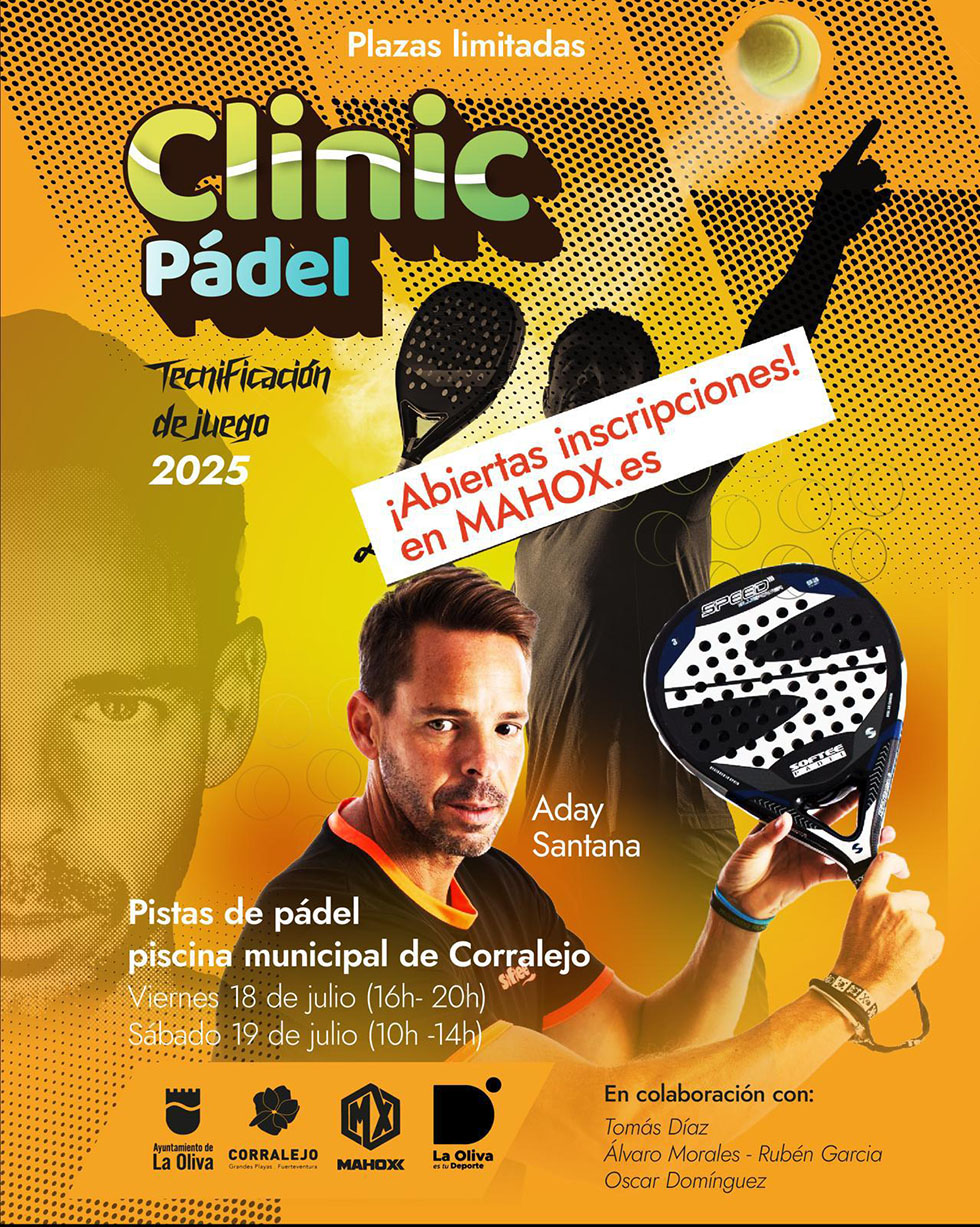El deporte también se vive en el verano de La Oliva. El municipio acoge su primer campus de pádel del 14 al 19 de julio para niños, jóvenes y clinic para adultos en las canchas de la piscina municipal de Corralejo. El Ayuntamiento de La Oliva, a través de la Concejalía de Deportes, que lidera Gleiber Carreño, junto con Mahox Experience, impulsa esta modalidad entre las nuevas generaciones así como en los adultos durante la temporada estival. En este sentido los participantes podrán disfrutar de clases para mejorar su técnica y preparación física, además de contar con diferentes sorteos, juegos para los más pequeños junto con otras muchas sorpresas que harán de este encuentro una experiencia única.