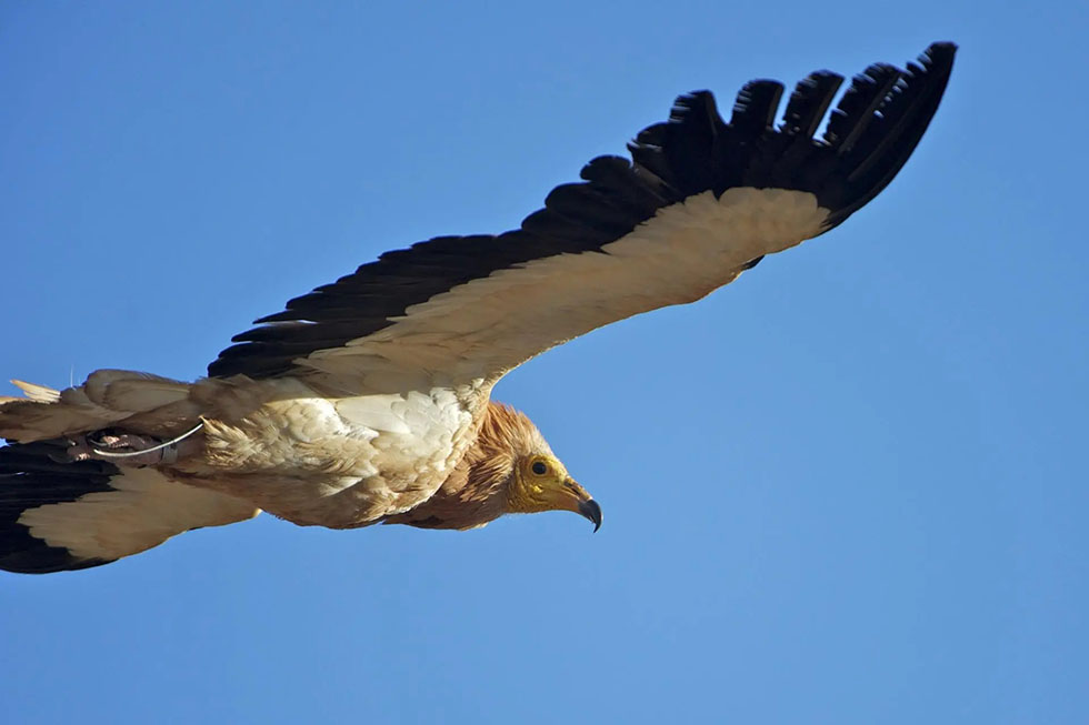 El guirre (Neophron percnopterus majorensis) es una subespecie endémica del alimoche exclusiva de Fuerteventura y Lanzarote, tan rara y especial que cuenta con una población mundial extremadamente reducida, poco más de 400 individuos de los que menos de la mitad son adultos reproductores. Catalogado en peligro crítico de extinción por la Unión Internacional para la Conservación de la Naturaleza (UICN), es más grande y pálido que el alimoche europeo. Extremadamente inteligente, capaz de usar piedras para romper huevos de otras aves, algo único entre rapaces, su vuelo planeador majestuoso lo hace icónico en el paisaje insular. Pieza fundamental de los ecosistemas áridos de Canarias al ocupar el nivel superior de la pirámide trófica como carroñero oportunista, ayuda a evitar la propagación de enfermedades e incluso pandemias.