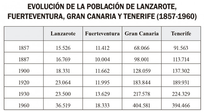 Durante centurias, Lanzarote y Fuerteventura no solo fueron el granero de Canarias, sino también una fuente constante de jornaleros y mano de obra campesina barata para otros territorios. Valga un solo ejemplo en cifras. A pesar de la alta natalidad que se registraba, la población de Fuerteventura entre 1857 y 1920 apenas pudo subir en 500 personas, mientras que la de Gran Canaria casi se triplicó y en Tenerife se multiplicó por dos. Muchos pueblos y barrios de las islas centrales o de La Palma fueron creados por majoreros y conejeros, quienes también emigraban en masa a Sudamérica y, en menor medida, a África o Europa, según las coyunturas históricas de cada momento. En cambio, entre 1980 y 2024 la población de Gran Canaria creció solo un 36 por ciento, frente al 468 por ciento de Fuerteventura en el mismo periodo.