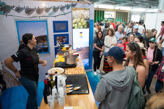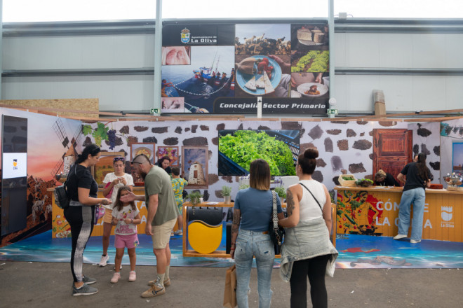 La Oliva ha apostado de nuevo este año en FEAGA por las pantallas para promocionar el sector primario del municipio, en un stand decorado con imágenes tradicionales como las jareas tendidas, paredes de piedra y cal, un portón de madera o un molino junto a un maravilloso suelo marino, que enseña a su rica fauna majorera, y nos sumerge en su amplia costa norteña.