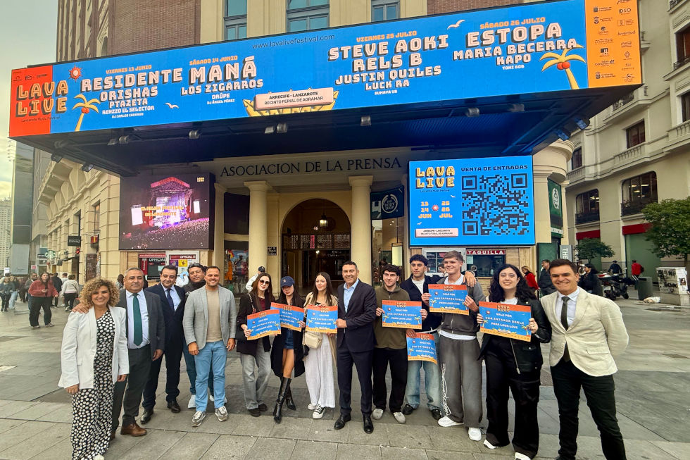 El emblemático Palacio de la Prensa, en la Gran Vía madrileña, se convirtió este jueves en un escaparate privilegiado para la promoción del Lava Live Festival, el acontecimiento musical organizado por Preventos Media que se celebrará en Lanzarote los días 13 y 14 de junio y 25 y 26 de julio.