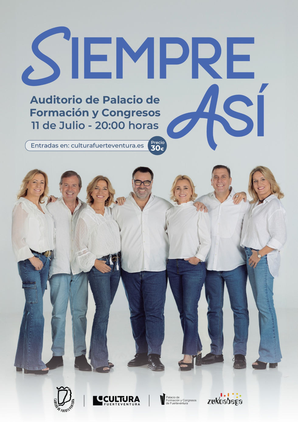El escenario majorero será testigo de este recorrido musical por los grandes éxitos de Siempre Así, interpretados con la autenticidad y la energía que han convertido a estos siete artistas sevillanos en una referencia imprescindible de la música española.