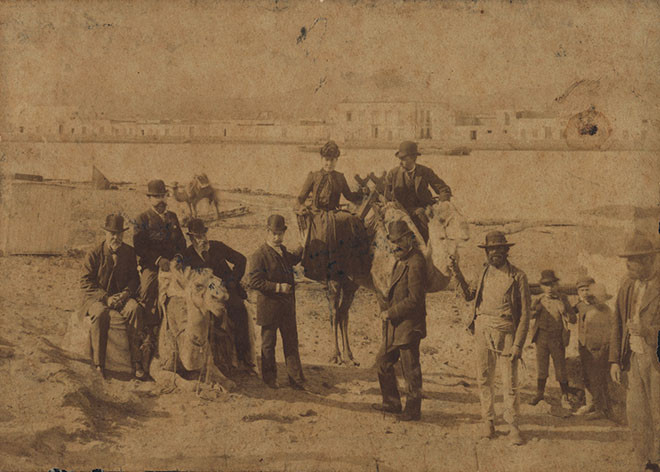 Olivia Stone, enfrente de la marina de Arrecife, donde actualmente está la Casa de la Cultura Agustín de la Hoz. 1884. Archivo de fotografía histórica de Canarias, Cabildo de Gran CanariaFEDAC.