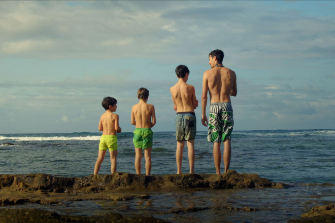 Felipe junto a sus sobrinos en la costa de Tenerife.