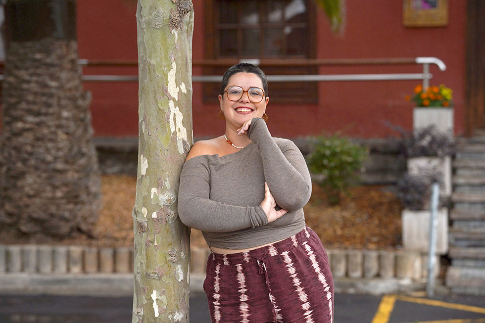 -Me encanta esta pregunta porque me encanta hablar de la imposición de la especialización como yugo hacia todas las personas en países capitalistas después de la era industrial. De repente llega un momento en tu vida donde tienes que elegir. Y a mí eso me da tanto miedo como si me hablan de matrimonio para toda la vida, (risas). Me llamo artista multidisciplinar porque queda mejor, pero en realidad lo que soy es un culo inquieto. Desde pequeña estuve en saxo, en percusión, en aerobic, en danzas urbanas, ¡hasta catequesis! porque era divertido... Mi generación en general era muy culo inquieto porque se nos permitió mucho y utilizamos esa libertad para crear cosas guays. Elegí estudiar Periodismo porque siempre se me ha dicho que hablo mucho y me gusta comunicar. Pero he trabajado de periodista de oficina muchos años y el último sitio en Gran Canaria fue horrible, horrible, horrible. Hasta se tomaban a risa que tuvieras ciertas inquietudes más allá de centrarte en tu trabajo. A las dos semanas de irme de ese sitio me di de alta como autónoma sin nada delante y nada detrás, sin un plan ni estrategia, sino porque iban a subir la tarifa plana de autónoma a 20 euros más, (risas). Y un amigo me dijo si te vas a dar de alta hazlo ya, y salté a la piscina.