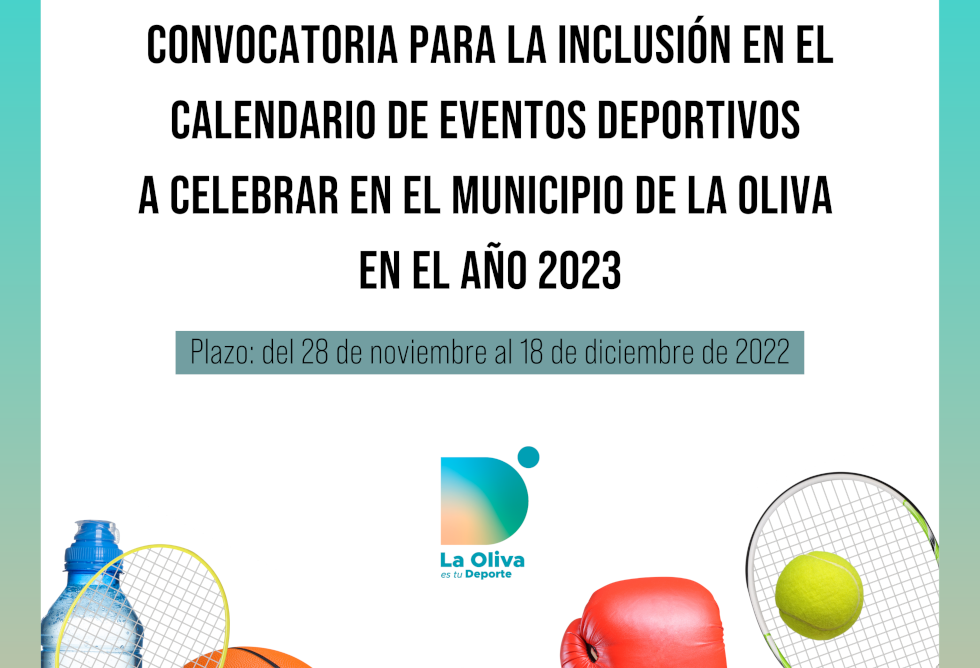 La Concejalía de Deportes del Ilmo. Ayuntamiento de la Oliva, para confeccionar el calendario de eventos deportivos de 2023, con dicho el objetivo y el de realizar una previsión y planificación de las diferentes líneas de colaboración con los promotores, abre la convocatoria para solicitar la inclusión en el calendario municipal de eventos deportivos.