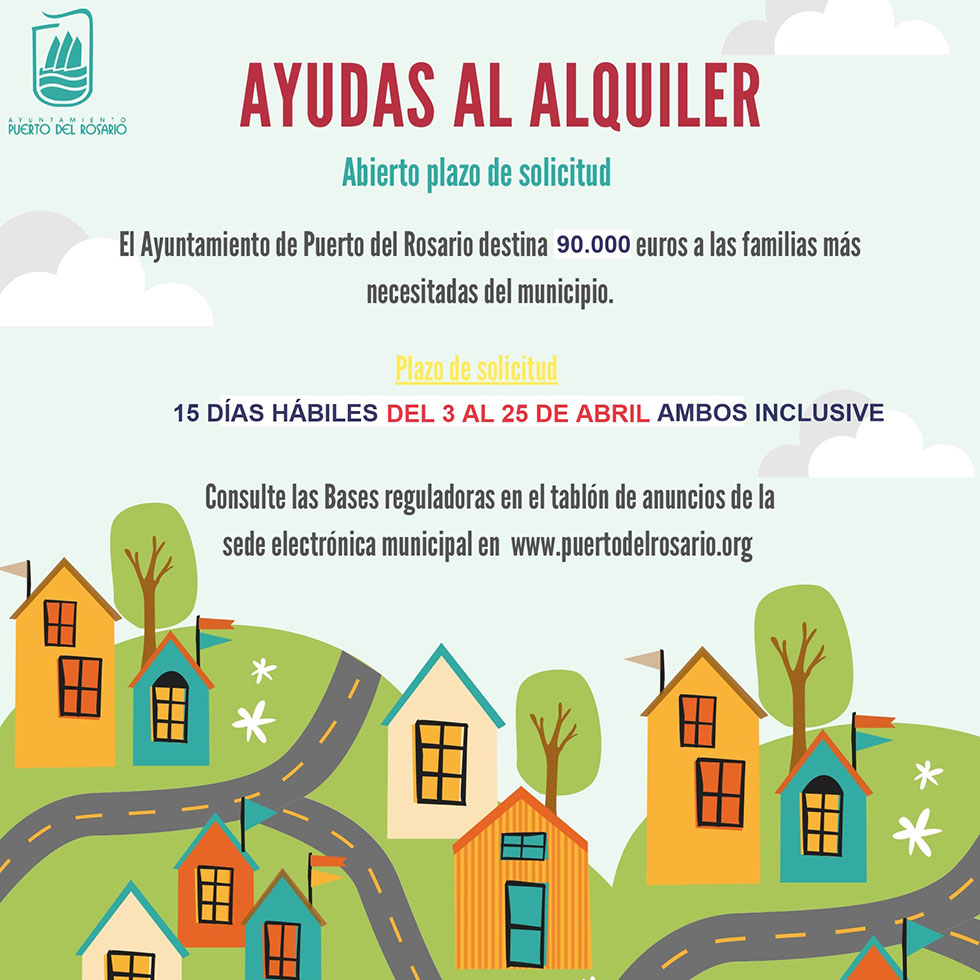 El Ayuntamiento de Puerto del Rosario recuerda a los vecinos y vecinas que ya está abierto el plazo para realizar la solicitud de la cuarta convocatoria de ayudas al alquiler, que se podrán presentar hasta el próximo 25 abril.