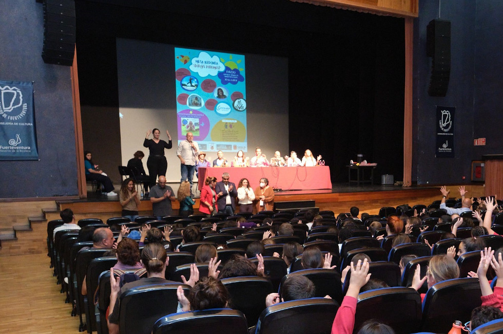 La presidenta del Cabildo de Fuerteventura, Lola García, dio la bienvenida a los presentes y agradeció la gran labor que realiza ADERIS con un proyecto que busca transformar la sociedad a través de la educación, contando con el apoyo de la Consejería de Educación de la Corporación insular. "Es importante concienciar desde edades tempranas en valores tan importantes como la empatía y la solidaridad, abordando la diversidad funcional de manera normalizada y afectiva", resaltó.