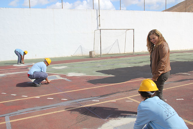 Las actuaciones de rehabilitación y acondicionamiento de la cancha deportiva del centro cultural de Villaverde "cumplen con un doble objetivo, por un lado, permiten al alumnado-trabajador perfeccionar y mejorar sus destrezas profesionales y, por otro, permiten la puesta en marcha de una infraestructura deportiva muy demandada por la Sociedad Datsimaal y los vecinos de la localidad".