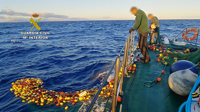 La Guardia Civil del Destacamento Marítimo de Fuerteventura perteneciente al Servicio Marítimo Provincial de Las Palmas ha retirado en colaboración con la Concejalía de Playas y Medio Ambiente del Ayuntamiento de La Oliva y Protección Civil el pasado día 11 un trasmallo de grandes dimensiones que alcanzaba aproximadamente un kilómetro de longitud por unos 12 metros de altura de malla.