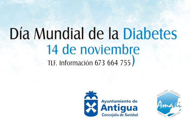 El Ayuntamiento de Antigua recuerda la importancia de prevenir para reducir las complicaciones agudas asociadas en materia de diabetes, y con este fin, señala el alcalde, colaboramos con AMADI en la distribución de trípticos informativos o marcapáginas señalando el teléfono de contacto de la asociación.