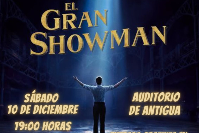 El Ayuntamiento de Antigua organiza y ofrece con entrada gratuita El Gran Showman un espectáculo musical que presenta para todos los públicos el Centro de Enseñanzas Artísticas de Música y Danza Academia Entre Siluetas, este sábado 10 de diciembre a las 19:00 horas en el Auditorio de Antigua.