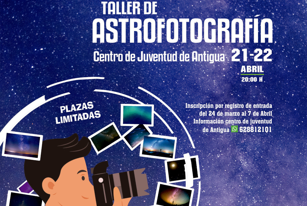 "El taller de Astrofotografía se organiza desde la concejalía de Juventud, impartiéndose el fin de semana, 21 y 22 de abril en el Centro de Juventud de Antigua a partir de las 20:00 horas", señala el concejal de área, Agustín G. Rodríguez.