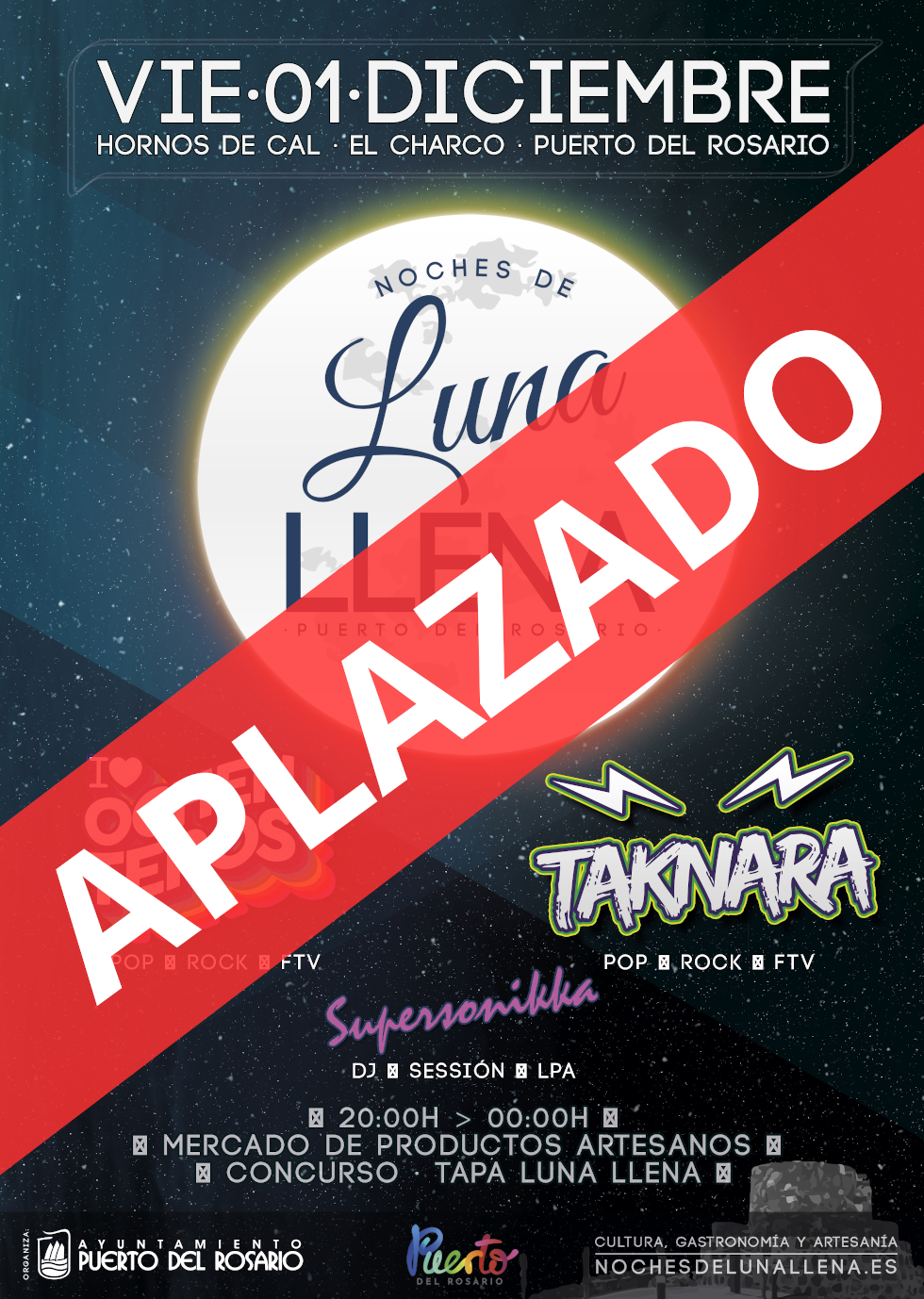 El Ayuntamiento de Puerto del Rosario, a través de la Concejalía de Turismo, informa del aplazamiento de las 'Noches de Luna Llena' por causas ajenas al Consistorio.