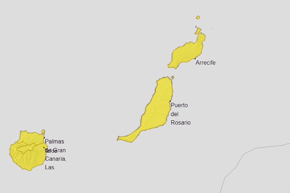 La Agencia Estatal de Meteorología (Aemet) ha activado el aviso amarillo para este viernes en Fuerteventura, Lanzarote y Gran Canaria debido a probables chubascos fuertes que pueden estar acompañados de tormentas, en una jornada en la que las temperaturas descenderán y en la que el viento seguirá soplando con rachas fuertes en Canarias.