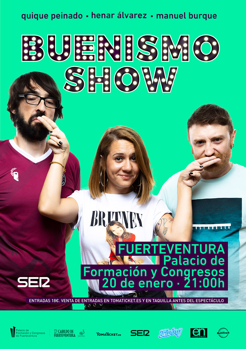 El Palacio de Formación y Congresos de Fuerteventura acogerá el próximo día 20 de enero de 2023, a partir de las 21.00 horas, el espectáculo protagonizado por Manuel Burque, Quique Peinado y Henar Álvarez, 'Buenismo Show'.