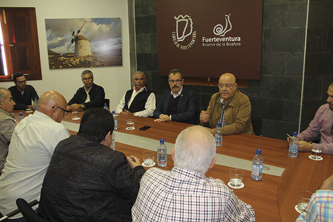 El Cabildo de Fuerteventura, la Cámara de Comercio y empresarios de la Isla reivindican con urgencia al Ministerio de Fomento la corrección de las condiciones de licitación de la Obligación de Servicio Público de la conexión marítima Canarias-Península, con el objetivo de que se incluya como requisito ineludible la escala obligatoria en los muelles de Puerto del Rosario y Arrecife. Así lo han ratificado en una reunión mantenida en el Cabildo de Fuerteventura, que contó con la participación del presidente de la Asociación de Empresarios Turísticos de Fuerteventura, Antonio Hormiga, y representantes de distintas empresas majoreras.