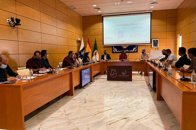 El Cabildo de Fuerteventura ha convocado un encuentro entre el catedrático de la Universidad de La Laguna, Ricardo Guerrero, y los ayuntamientos de la Isla para plantear las primeras comunidades energéticas ciudadanas (CEC) de ámbito municipal. Este proyecto es promovido y financiado por la Dirección General de Energía del Gobierno de Canarias y parte de un estudio elaborado por la empresa Energy RYS, integrada por profesores e investigadores de la Universidad de La Laguna.