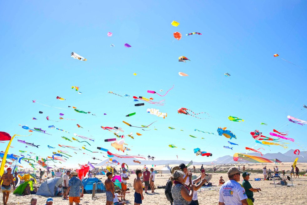 En el aire, cometas de grandes dimensiones se han mezclado con otras más pequeñas y dinámicas que no han parado de serpentear en el aire. Desde enormes animales de todos los colores pasando por personajes de dibujos animados, mariposas, brujas, astronautas, cangrejos o preciosas figuras geométricas que han convertido los cielos de Corralejo en un enorme lienzo natural. Centenares de figuras comandadas por los 210 participantes que han convertido esta edición en una de las de mayor participación.