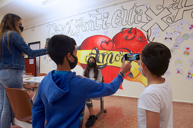 Juana Manzanares es una de las docentes nombradas por el programa como pareja pedagógica en el CEO Antigua. Licenciada en Matemáticas, y docente de esta especialidad, encontró en la fotografía una herramienta valiosa para introducir al alumnado en conceptos complejos, de forma dinámica. “La fotografía es, en sí misma, un lenguaje. Uno de los objetivos es que ellos disfruten de ese lenguaje, y dentro de ese lenguaje, que, por otro lado, encuentran muy motivador, pueden aprender; la fotografía puede activarles, motivarles y ayudarles a acercarse a conceptos”, explica la profesora, que, tras descubrir el interés que despertaba en el alumnado, ha ido incorporando al proyecto distintas disciplinas.