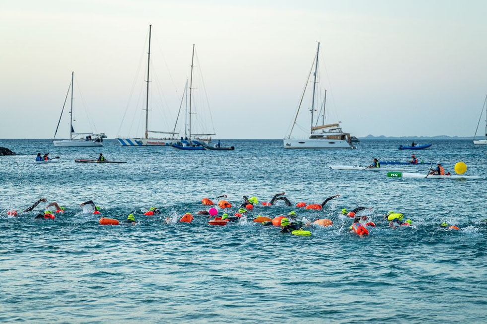 Playa Dorada, en la localidad turística de Playa Blanca, en el sur de Lanzarote, volvió a ser el punto de partida de los valientes nadadores que tenían como objetivo cruzar la línea de meta situada en el Puerto de Corralejo, Fuerteventura.