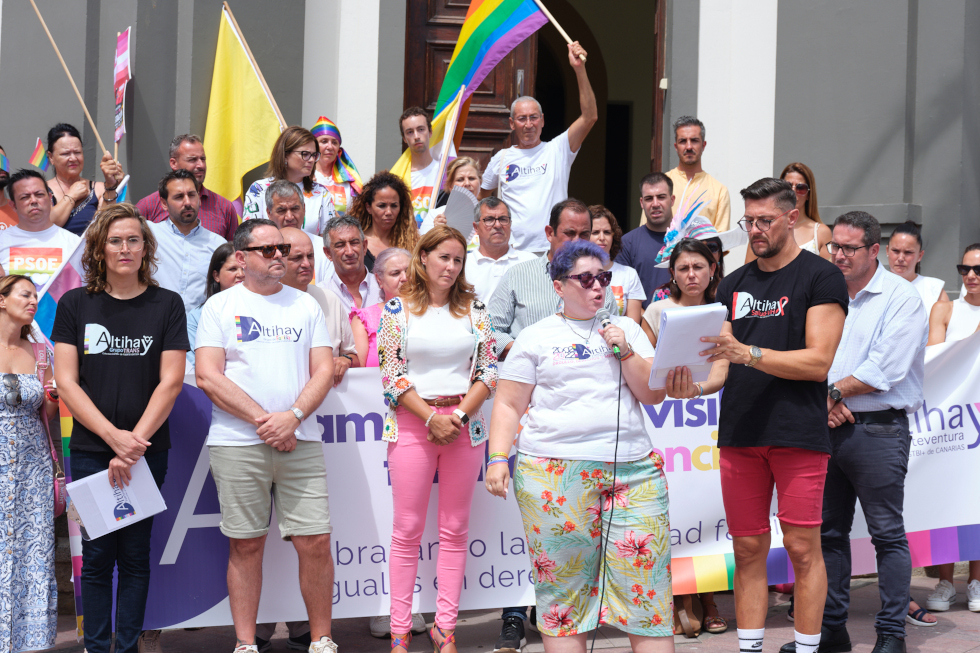 En la misma línea, el alcalde capitalino David de Vera dio la bienvenida al colectivo Altihay en el municipio de Puerto del Rosario, y aseguró que "estamos presentes hoy, 28 de junio, para dar apoyo a las reivindicaciones y los derechos de la diversidad, no solo de la sociedad de Puerto del Rosario sino de todo Fuerteventura. Queremos mostrar, desde la Concejalía de Igualdad y LGTBI+, el apoyo incondicional de esta Corporación a colaborar y trabajar por una sociedad más igualitaria y justa frente a la diversidad que contempla".