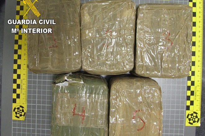 Los agentes del Grupo de Intervención Rápida (GIR) de la Guardia Civil, en Fuerteventura, ha detenido el pasado día 16 del presente mes a un varón de iniciales J.R.R.F.A. -nacionalidad española, 35 años de edad y con numerosos antecedentes policiales- como presunto autor de un delito contra la salud pública (tráfico de drogas), al ser sorprendido por los agentes con 7,275 kilogramos de hachís.