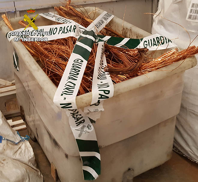 En paralelo, la Guardia Civil intervino un total de 355 kilos de cobre, que sin ninguna duda y atendiendo a su grosor y características técnicas, se corresponden con el utilizado para el tendido eléctrico en la vía pública.
