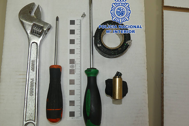 En el interior del vehículo de uno de los arrestados los funcionarios policiales intervinieron numerosas herramientas.