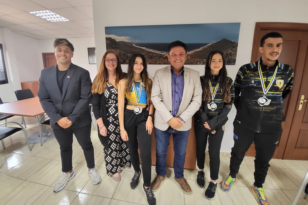 El alcalde de Pájara, Pedro Armas, y el concejal de Deportes, Manuel Rodríguez, mantuvieron un encuentro con las atletas del club EAMJ Playas de Jandía para trasladar su enhorabuena tanto a la entidad, como a las dos deportistas sureñas.