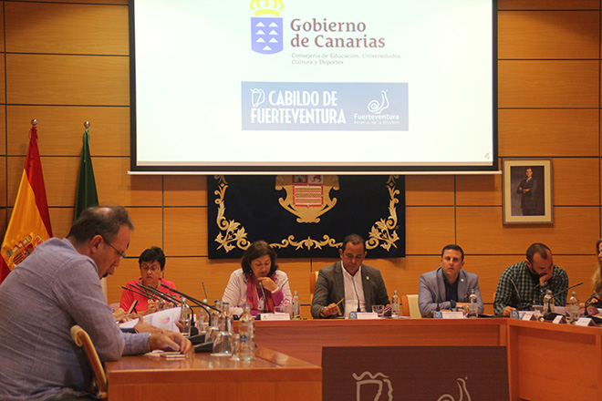 El presidente del Cabildo de Fuerteventura, Blas Acosta, y la consejera de Educación, Universidades, Cultura y Deportes del Gobierno de Canarias, María José Guerra, en su primera visita a Fuerteventura, mantuvieron una reunión este martes con los representantes de cinco ayuntamientos a fin de repasar la situación de la educación en la Isla.