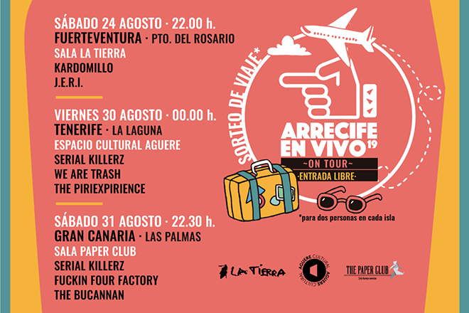 El festival lanzaroteño organizará tres conciertos en la Sala La Tierra (24 de agosto), Aguere Cultural (30 de agosto) y The Paper Club (31 de agosto) El Mejor Festival de Mediano Formato de España pone en marcha Arrecife en Vivo On Tour, una ruta de conciertos en Fuerteventura, Tenerife y Gran Canaria. La Tierra, en Puerto del Rosario, será la primera sala de desembarco del festival conejero.