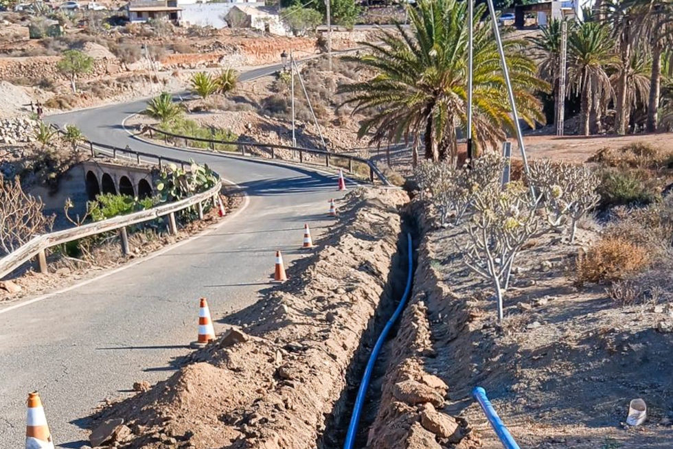 Las actuaciones se están desarrollando en los núcleos de Valle de Santa Inés, Red Aguas Verdes, Betancuria, La Vega y Campo Viejo, donde se están sustituyendo antiguas conducciones por nuevas tuberías de PVC y PE-100, materiales más resistentes y duraderos frente a la presión y las condiciones del terreno.