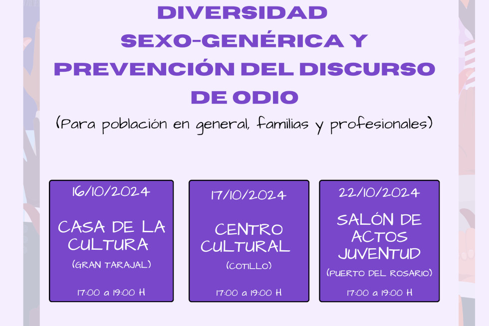 El Cabildo de Fuerteventura, a través del Punto de Información Sexual (PIS), en colaboración con la Asociación EUFORIA Familias Trans-Aliadas, han puesto en marcha las 'Jornadas de Sensibilización sobre Diversidad sexo genérica y prevención del discurso de odio'.