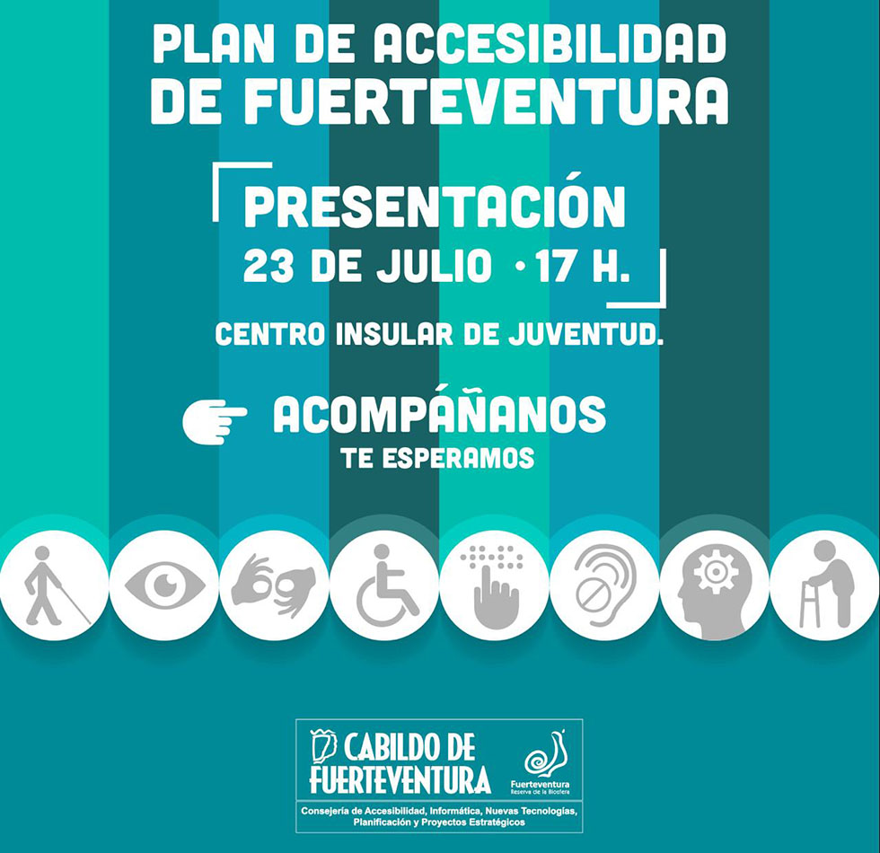 El Plan de Accesibilidad de Fuerteventura será presentado el próximo miércoles, 23 de julio, a las 17.00 horas, en el Centro Insular de Juventud, en un acto abierto a todas las personas interesadas.