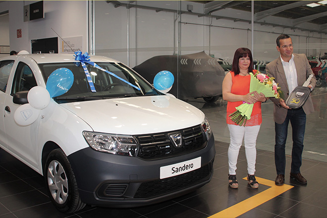 La empresa Juan Toledo, concesionario de Renault en Lanzarote y Fuerteventura, ha puesto el broche de oro a un año de celebración con motivo de su 50 aniversario con la entrega de un Dacia Sandero a la ganadora del sorteo conmemorativo celebrado entre todos los clientes que realizasen un gasto igual o superior a 600 euros en las instalaciones Renault-Dacia de Lanzarote y Fuerteventura desde el 1 de noviembre de 2017 hasta el 30 de abril de 2018.