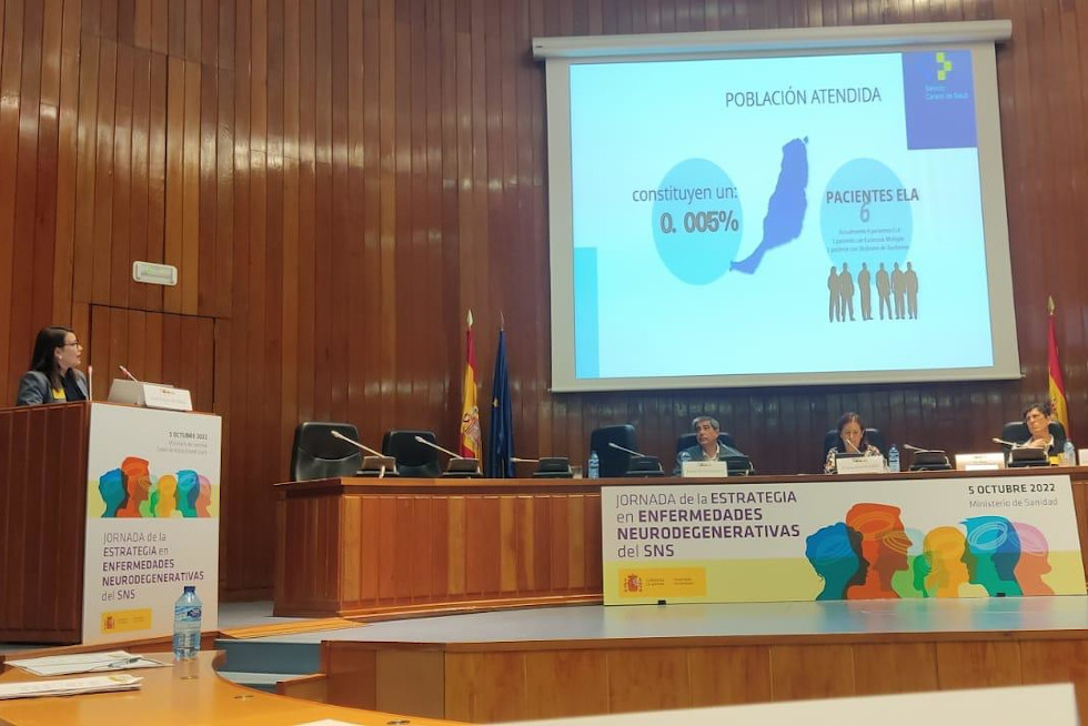 La Unidad de Enfermedades Neuromusculares Progresivas del Hospital General de Fuerteventura, centro adscrito a la Consejería de Sanidad del Gobierno de Canarias, ha sido invitada a participar en la Jornada de la Estrategia en Enfermedades Neurodegenerativas del Sistema Nacional de Salud, celebrada ayer miércoles, día 5 de octubre, en la sede del Ministerio de Sanidad en Madrid.