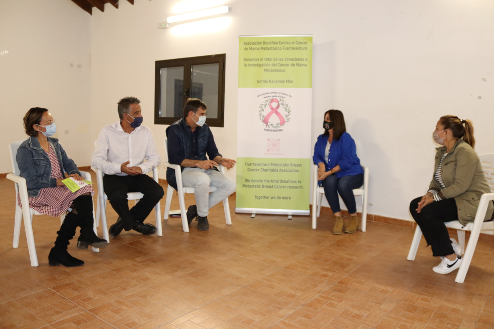 El presidente insular del Partido Popular, Fernando Enseñat, acompañado por los consejeros, Claudio Gutiérrez y María Hernández, junto a la concejala de Antigua, América Brito, mantenían en la tarde de ayer una reunión con la presidenta del la Asociación Contra el Cáncer de Mama Metastásico de Fuerteventura, Ana Pérez, con el fin de dar visibilidad y mostrar apoyo a todas las personas y familiares que sufren esta patología.