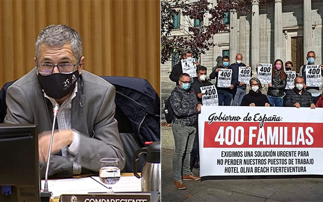 Morán esquivó la pregunta de la diputada del PP acerca de si el Ministerio finalmente otorgaría la licencia de obras. Un grupo de trabajadores del Oliva Beach acudieron a Madrid para un acto de protesta a las puertas del Ministerio para la Transición Ecológica y frente al Congreso de los diputados.