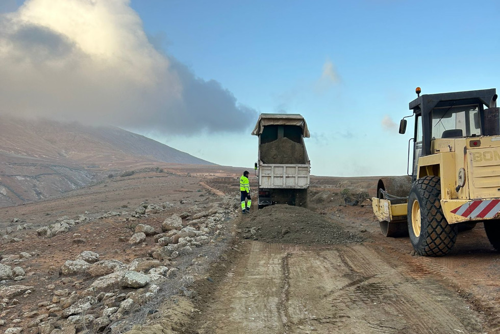 El Servicio de Obras y Maquinaria del Cabildo de Fuerteventura está concentrando esta semana los trabajos del tren de recebe en el municipio de Betancuria. Se están arreglando caminos de tierra de especial importancia estratégica como el que conecta el pueblo con el depósito de agua; una planificación que se coordinará con el Ayuntamiento.