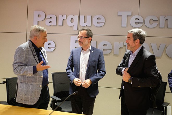 El presidente de Canarias, Fernando Clavijo, acompañado por el presidente del Cabildo de Fuerteventura, Marcial Morales, el alcalde de Puerto del Rosario, Nicolás Gutiérrez, el director del Área de Salud de Fuerteventura, Tomás Pérez, y el director del Instituto de Enfermedades Tropicales y de Salud Pública de la Universidad de La Laguna, Basilio Valladares, participó este martes en un acto en el que se presentó el informe que ratifica la erradicación en la Isla del mosquito Aede Aegypti, que puede transmitir el dengue.