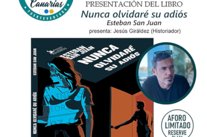 El escritor Esteban San Juan presenta este martes, día 11 de mayo, a las 20.00 horas, en el Centro Bibliotecario Insular, su novela Nunca olvidaré su adiós, recientemente premiada en el V Certamen Corcel Negro, de Entrelíneas Editores.