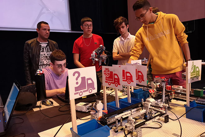 Bajo la organización de la Consejería de Nuevas Tecnologías del Cabildo Insular y en colaboración con la Universidad de Las Palmas de Gran Canaria, estudiantes de secundaria de los cinco centros educativos de la isla que habían resultado finalistas fueron los encargados de diseñar una fábrica inteligente que clasificara de forma automática los paquetes en una empresa de logística.