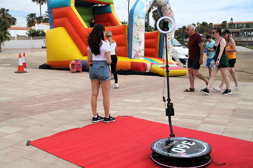 El alcalde, Matías Peña y la concejala Rodewig han visitado este viernes por la mañana los juegos infantiles, el taller de pintacaras, la plataforma de vídeos 360º, el cañón de espuma en la playa y el circuito de cars preparados para disfrute de los más pequeños y pequeñas de la casa.