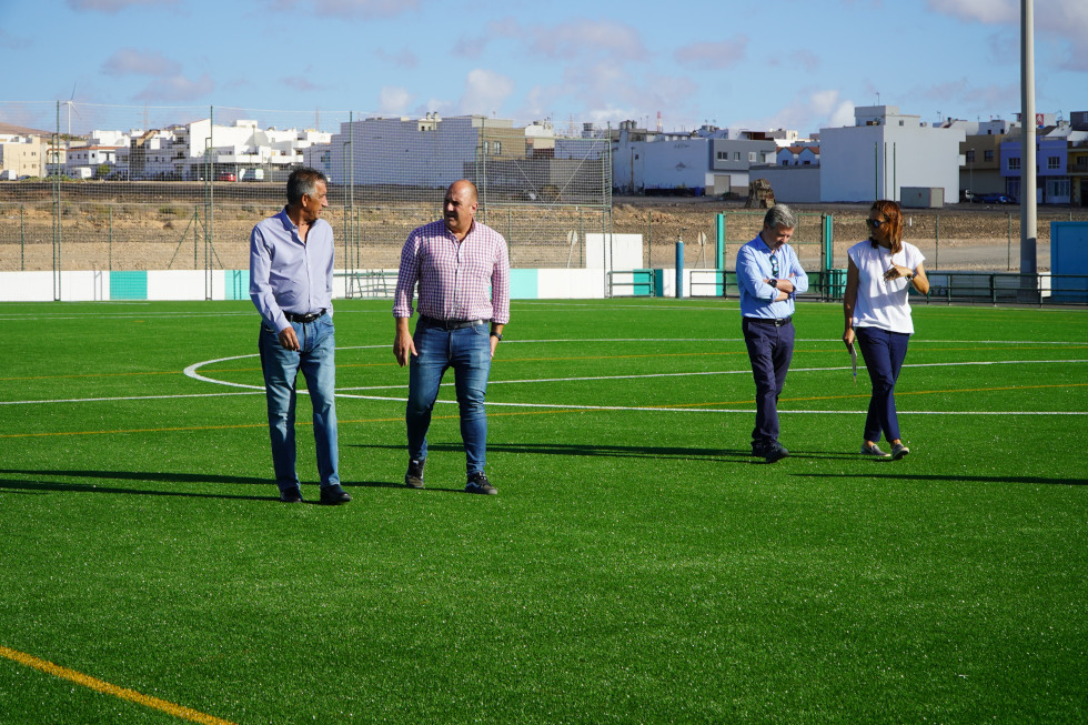 El presidente del Cabildo, Sergio Lloret señala con satisfacción que "ya están finalizadas las obras de los dos campos, en los que se ha colocado un césped de última generación y ecológico, que se ha extendido también a la zona calentamiento y de los banquillos, con una inversión aproximada de un millón de euros. Esta nueva instalación del terreno de juego mejorará la sensación térmica, en la que se emplean materiales que se calientan menos que el caucho, y que contribuyen a mantener el compromiso con la sostenibilidad y con el deporte que tiene la Corporación insular para seguir avanzando y mejorando en la isla de Fuerteventura".