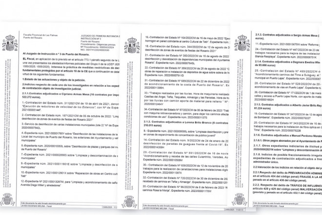 “Con el análisis de los movimientos bancarios observados en las cuentas corrientes de los investigados” entre el arranque de 2020 y el final de 2023, incidiendo en las operaciones relacionadas “con las transferencias efectuadas por el Ayuntamiento de Puerto del Rosario, es fácil constatar que la conducta de adjudicar los contratos menores de obras y servicios esconde una finalidad ilícita”, añade la Fiscalía.