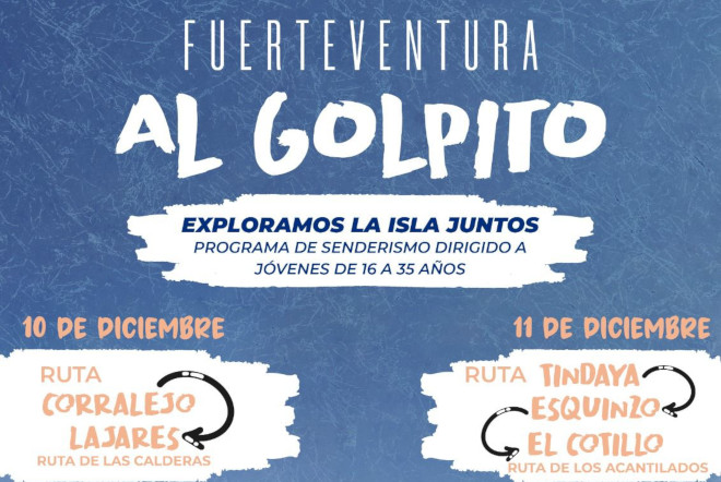 El programa 'Fuerteventura al Golpito' de la Consejería de Educación y Juventud del Cabildo de Fuerteventura abre la inscripción a cuatro rutas por la isla dirigidas a jóvenes de entre 16 y 35 años.