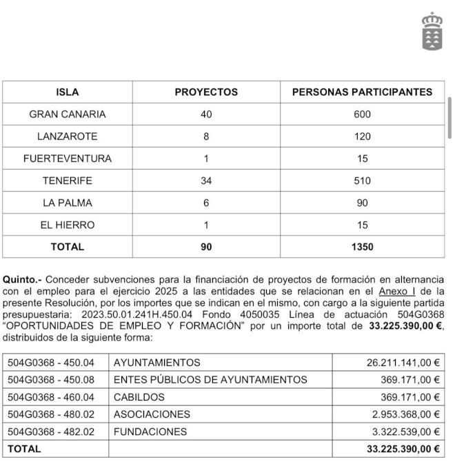 Desde la formación recuerdan que Puerto del Rosario es la capital insular y debería liderar las políticas activas de empleo en Fuerteventura. Sin embargo, la isla solo contará con un proyecto y 15 personas participantes, frente a los 90 proyectos y 1.350 personas en el conjunto de Canarias. Gran Canaria tendrá 40 proyectos, Tenerife 34, Lanzarote ocho y Fuerteventura, uno. “Y no es de Puerto del Rosario”, lamentan.