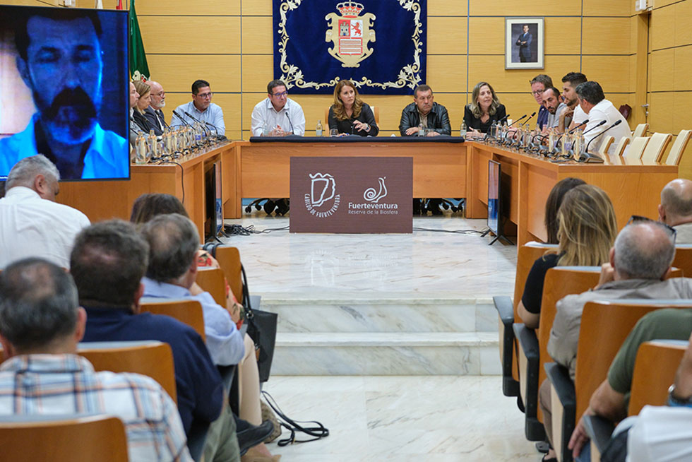 “Fuerteventura tendrá línea marítima con Tarfaya únicamente si se cumple con todas las medidas y condiciones necesarias que se exigen en el resto de puertos del Estado”. Así lo hicieron saber la presidenta del Cabildo de Fuerteventura, Lola García, el alcalde de Puerto del Rosario, David de Vera, y el consejero insular, Matías Peña, al sector ganadero, agrícola y comercial de Fuerteventura, en una reunión convocada por ambas instituciones.